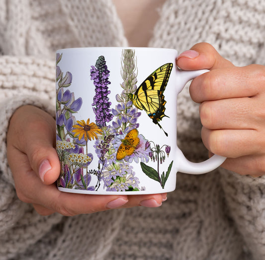 Swallowtails on Native Plants Mug 11oz, ecology conservation gift for gardeners and nature lovers