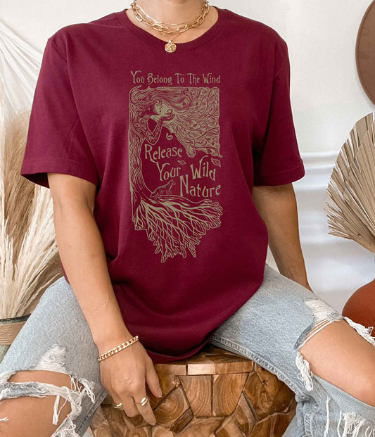 Tree Spirit & Fox Linocut Style TShirt, Folk Art Nouveau, Green Witch Unisex Tee, Gift for all Women who are a Fierce Force of Nature