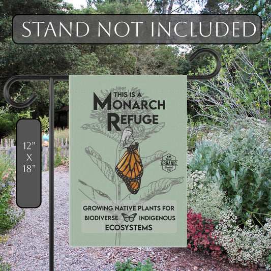 Monarch Refuge Garden & House Banner, Save the Monarchs native plant banner. Educational sign to help encourage Monarch conservation