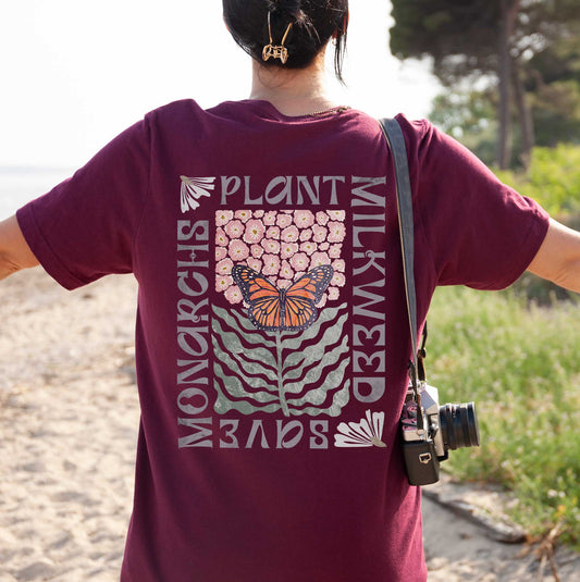 Save the Monarchs Plant Milkweed Conservation shirt. Spread the message about protecting our pollinators with amazing wearable art. 2 sides!