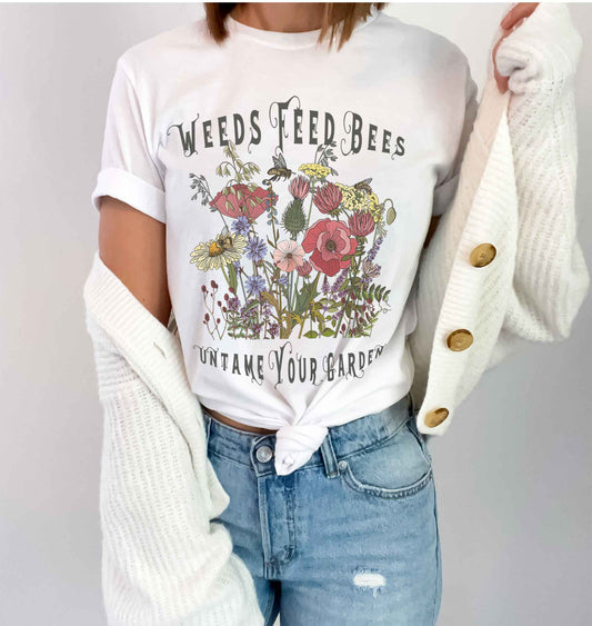 Untame Your Garden shirt, Weeds Feed Bees Conservation Tee for Naturalists, Environmentalists, and Gardeners Who Have Other Things To Do