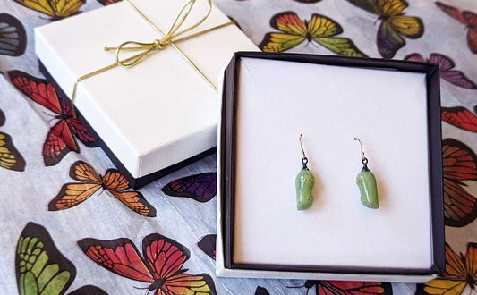 And this is where nature’s beauty meets molten glass. Each chrysalis necklace you see is handmade by me, crafted with fire, patience, and over two decades of passion for Monarchs. Browse my collection, and when you find the perfect piece, know that it was created to inspire transformation, connection, and wonder. Ready to bring something truly special into your life or gift it to someone who will cherish it?
