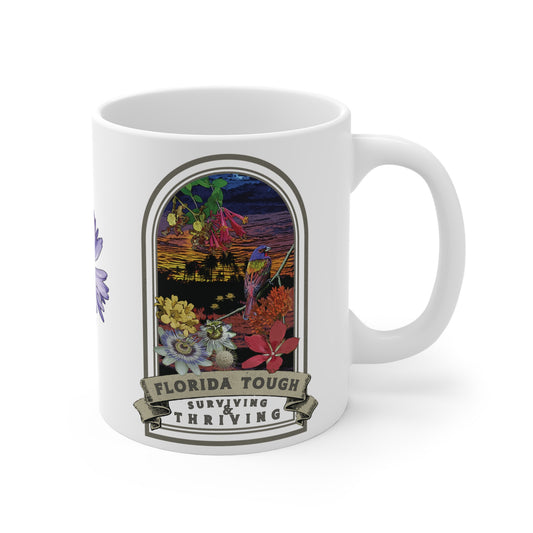 Florida Tough Native Plant Mug 11oz, Support the Environment with Native Plants. Celebrate Your Garden's Natural Strength. Thrive!