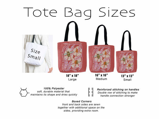 Save Pollinators Tote Bag, Save Mother Earth One Yard at a Time, Eco Message Gift for Environmentalists & Garden Lovers.