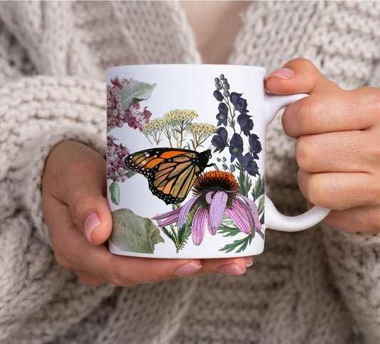 Monarchs on Native Plants Mug 11oz, ecology conservation gift for gardeners and nature lovers