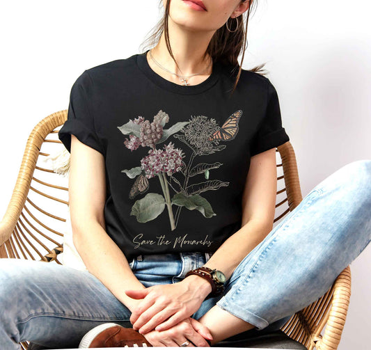Save the Monarchs Milkweed shirt, Monarch butterfly chrysalis botanical tee gardening gift conservationist naturalist biologist t-shirt