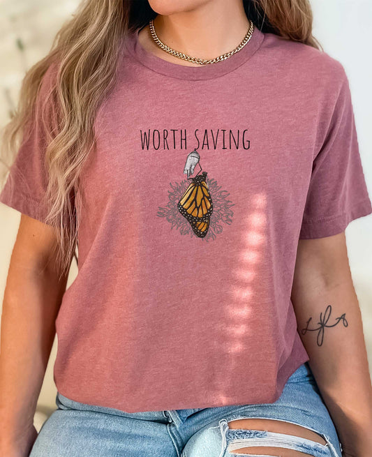 Worth Saving Monarch Butterfly tee, Save the Earth, pollinators & bees, conservation gardening shirt, native plants for ecology plant lover
