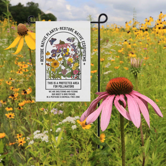 Restore Native Plants Garden & House Banner, gardener gift, conservation, healthy yard message to protect our pollinators!