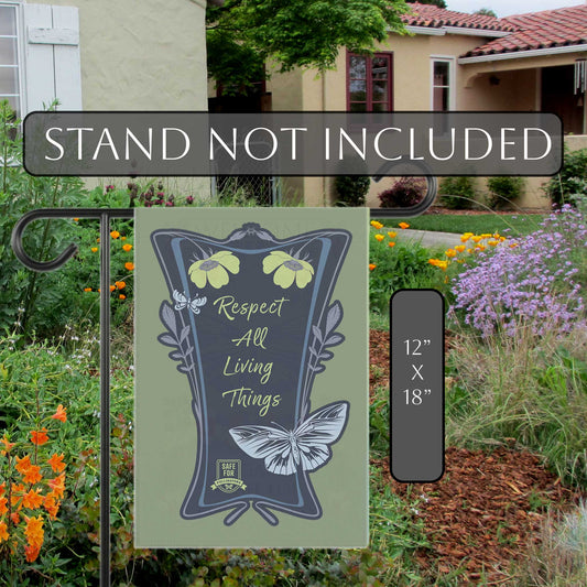 Respect All Living Things Flag House Banner, Eco Positivity Garden Message for Conservation of Bees, Butterflies, and Native Ecosystems