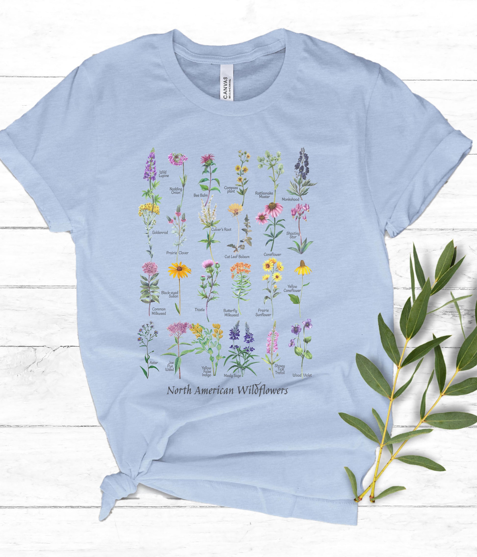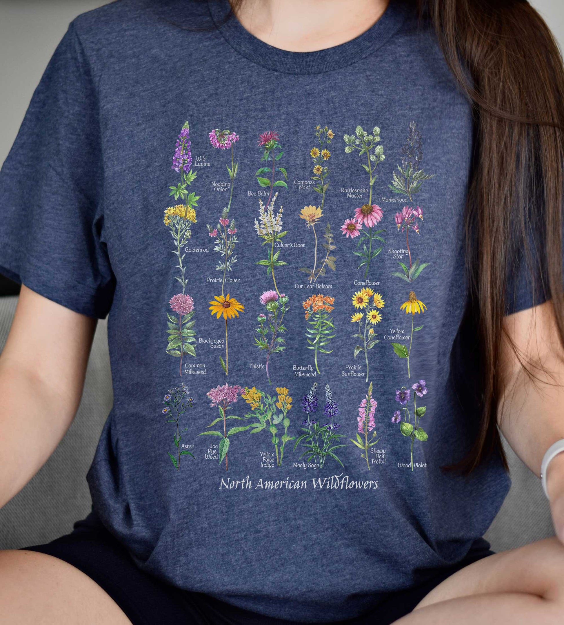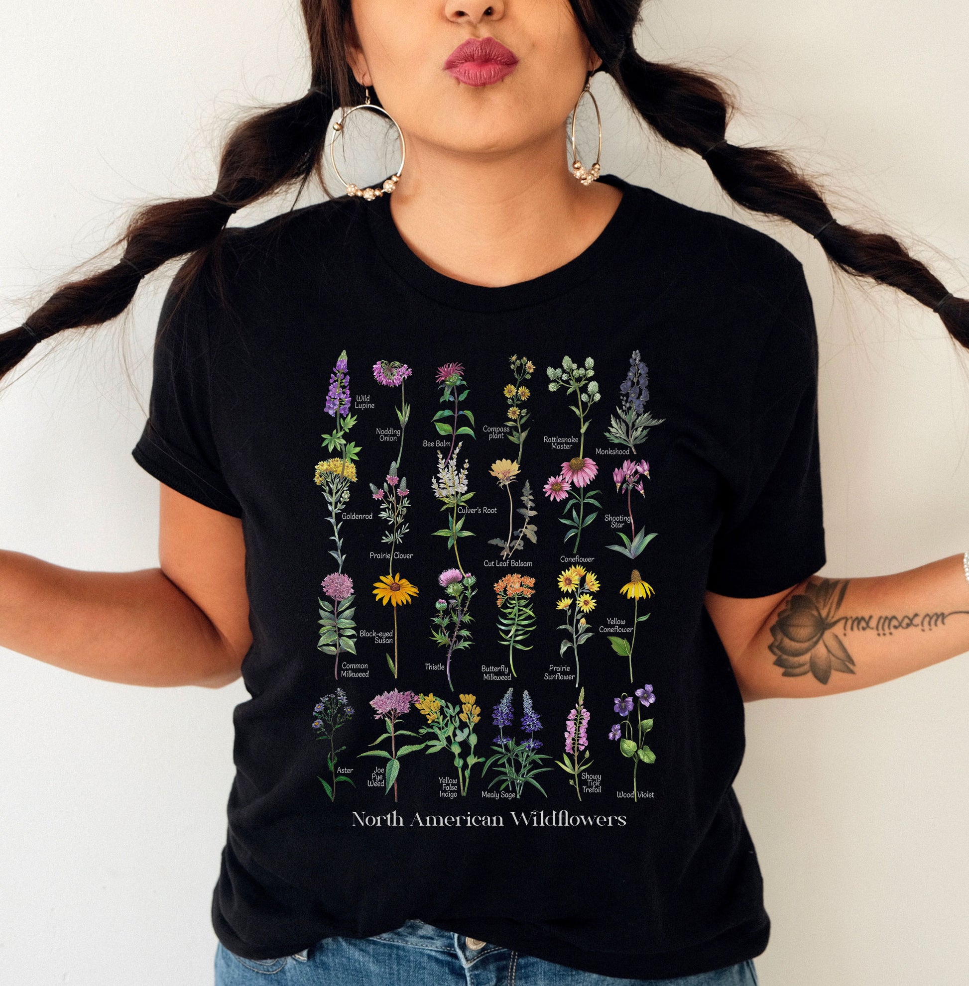 Native Wildflowers North America, Native plants t-shirt, Wildflower botanical chart hand-drawn flower conservation naturalist gardener gift