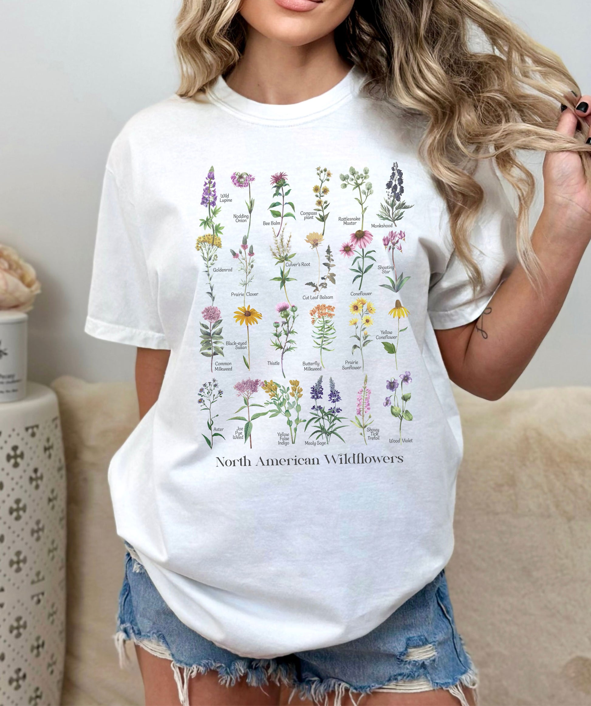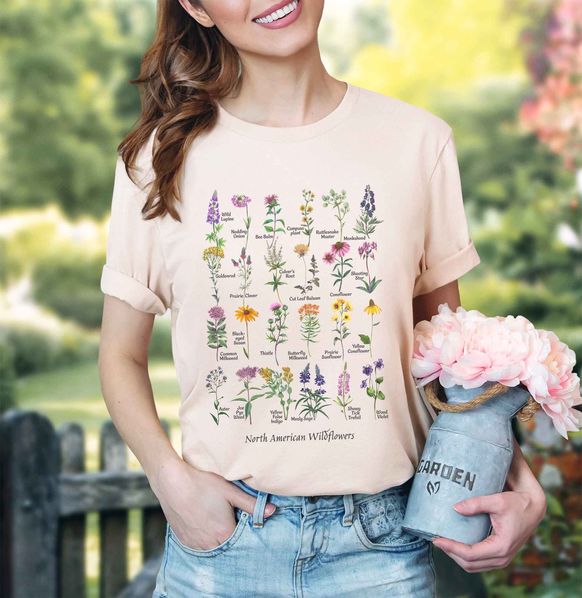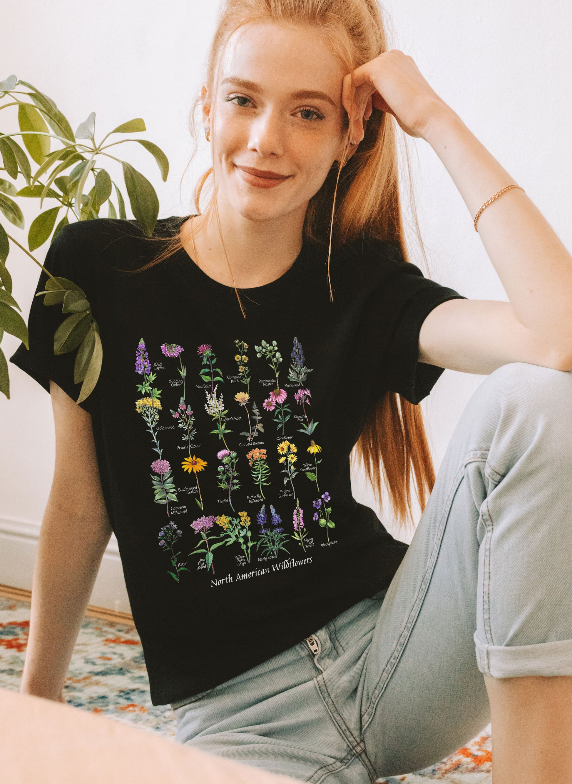 Native Wildflowers North America, Native plants t-shirt, Wildflower botanical chart hand-drawn flower conservation naturalist gardener gift
