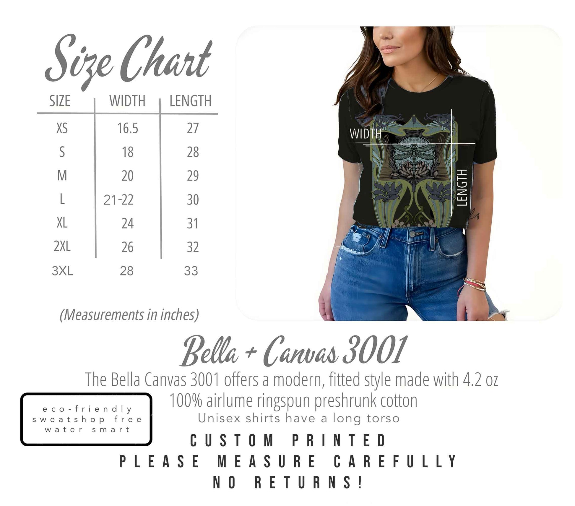This classic unisex jersey short sleeve tee fits like a well-loved favorite. Soft cotton and quality print make users fall in love with it over and over again. These t-shirts have-ribbed knit collars to bolster shaping. The shoulders have taping for better fit over time. Dual side seams hold the garment's shape for longer. .: 100% Airlume combed and ringspun cotton (fiber content may vary for different colors-Heather varieties are a cotton/poly blend) .: Light fabric (4.2 oz/yd² (142 g/m²)) .: Retail fit .: Tear away label .: Runs true to size